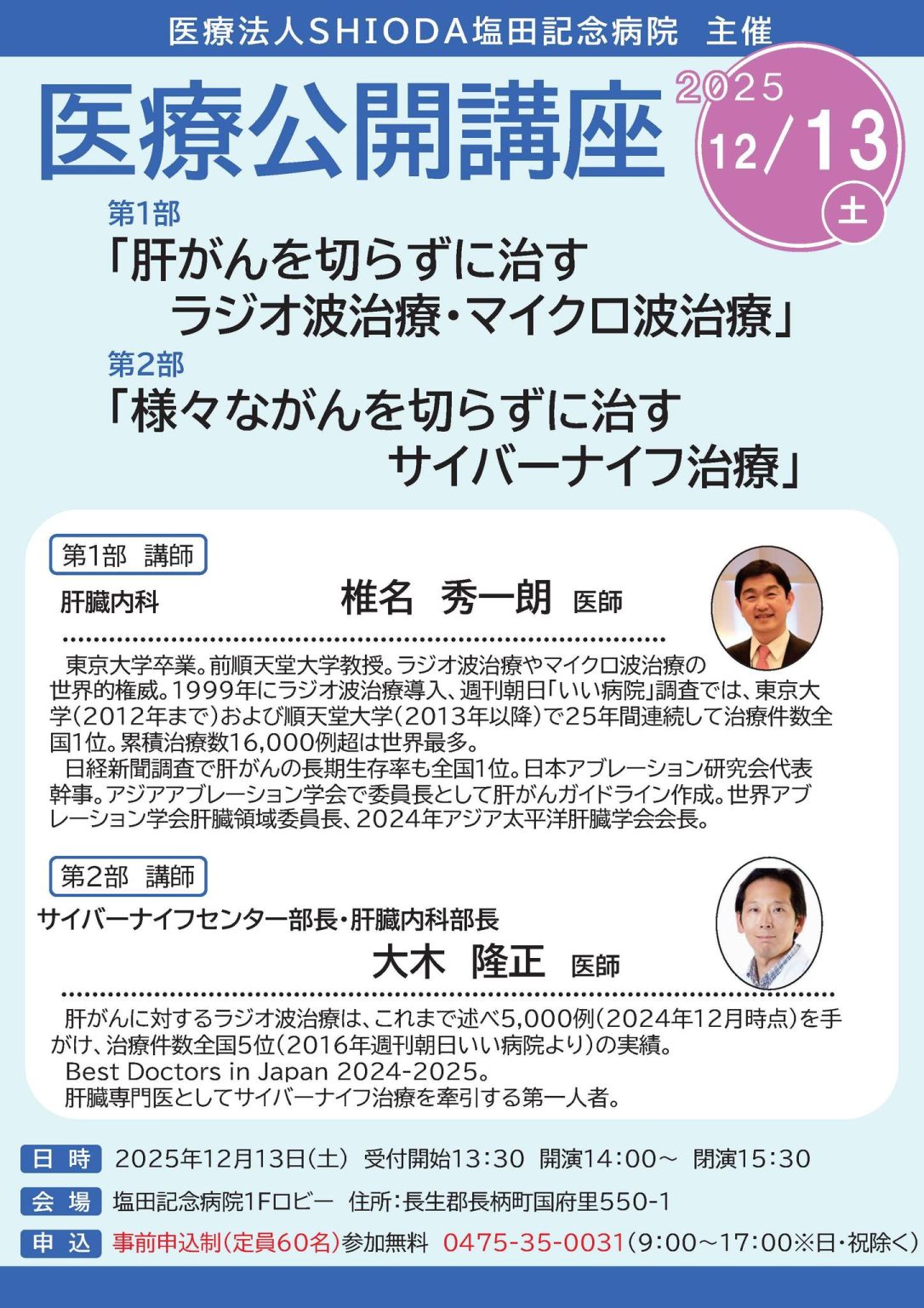 昨年12月13日に塩田記念病院で開催された医療公開講座のビデオが、YouTubeにアップされました。